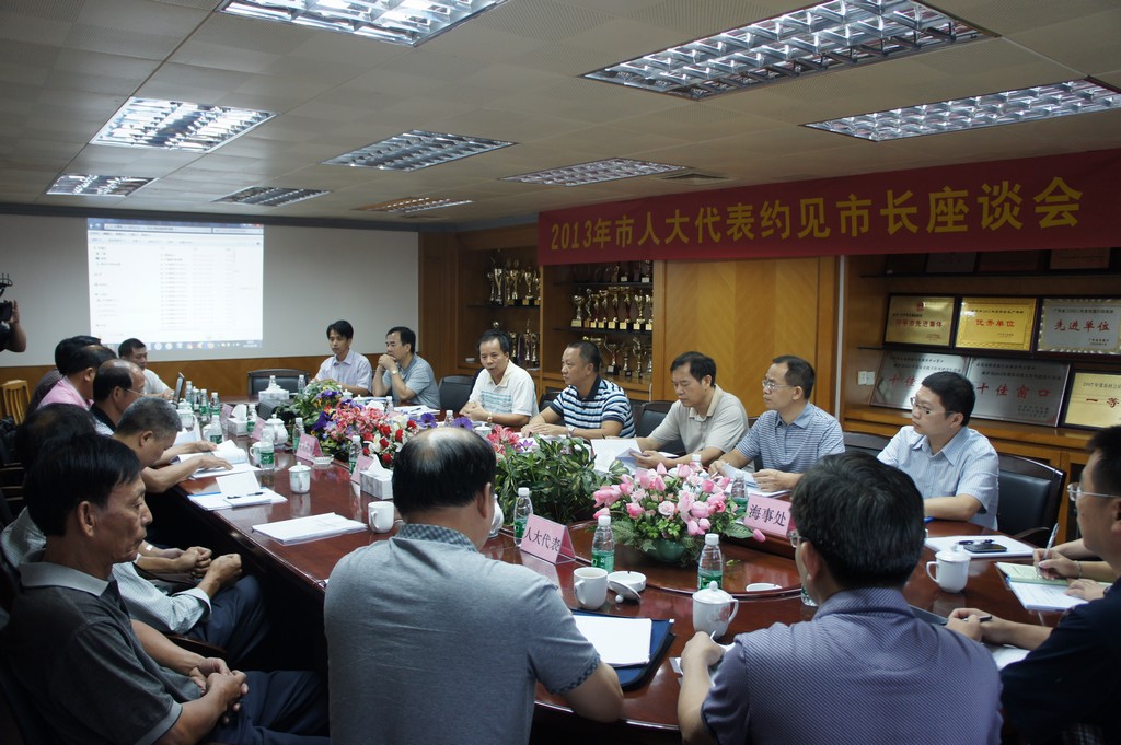 109上午,12名市人大代表约见市长,就加强治理车辆超限超载工作,与文彦市长进行对话。市人大常委会常务副主任张星杰、副主任邝业礼参加了约见活动。