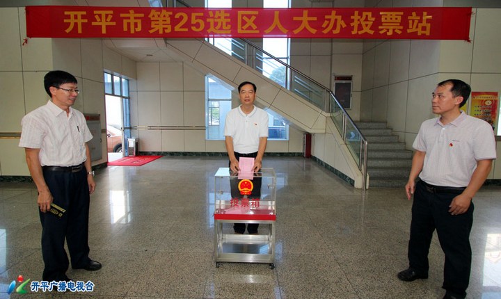 当天上午,在开平市第25选区市行政大楼中心会场投票站,市领导黄耀雄、庞正华、李沃华、陈军凯、谭良发、梁民跃、简锦聪、何武健、关位湛参加了投票。