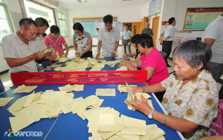 在开平市第57选区水口镇红进村中心会场,选民聚集在这里,充分行使当家作主权利。该选区有选民近5000人,将选出市人大代表2名,镇人大代表4名。选民们在选区监票人的组织引导下领取选票并认真填写。他们参与热情高,整个选举工作有条不紊。