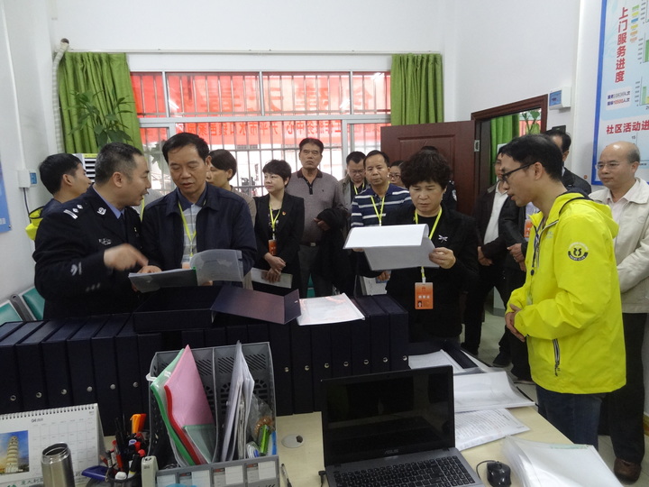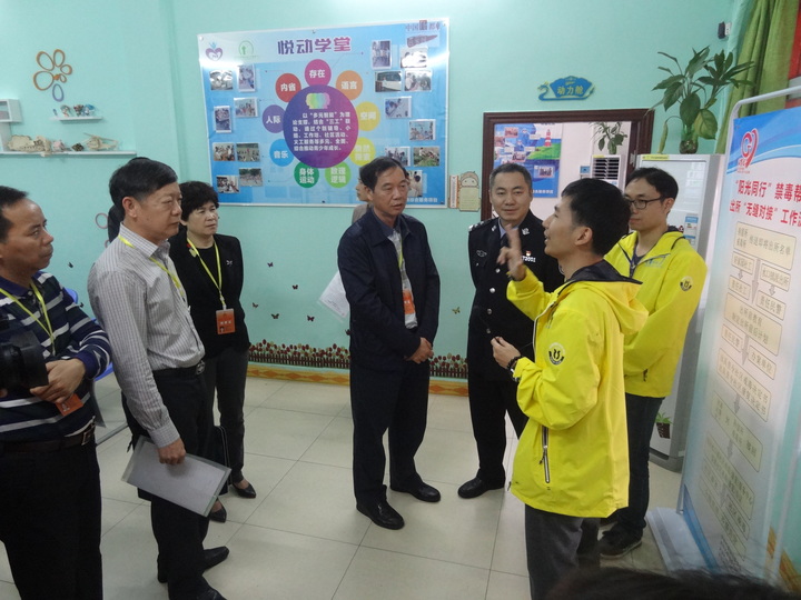 检查组一行查看了水口镇社区戒毒(康复)服务中心的兴建情况,深入了解项目的计划构建、社工配备、服务流程、和工作成效,并认真听取了项目社工对水口镇社区禁毒服务和社工介入后水口镇禁毒工作前后的区别与变化的介绍汇报。陈勇指出社区禁毒工作是“平安开平”建设的重要一环,仅依靠警方从制毒、贩毒方面去抑制毒情将很难实现社会的长治久安,必须多部门之间、部门与社工机构之间相结合,形成“分级管理、齐抓共管”的帮扶体系才有可能做到社区戒毒(康复)人员的零增长、减存量。水口镇的社区禁毒模式值得借鉴推广。