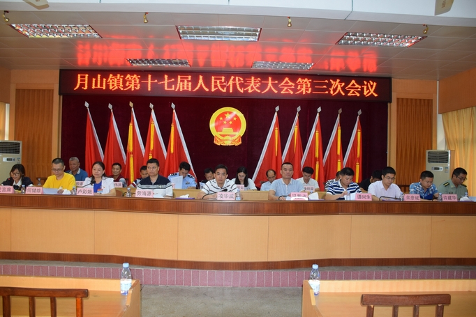 7 月25日,月山镇第十七届人民代表大会第三次会议在镇人民政府党校胜利召开,来自全镇的人大代表以及列席人员参加了会议。市委常委、镇委书记凌华威出席了会议。市人大选举联络任免工委主任谭尚生,市委组织部副部长谭健勇到会指导。本次会议由镇党委委员卢彩娥主持。