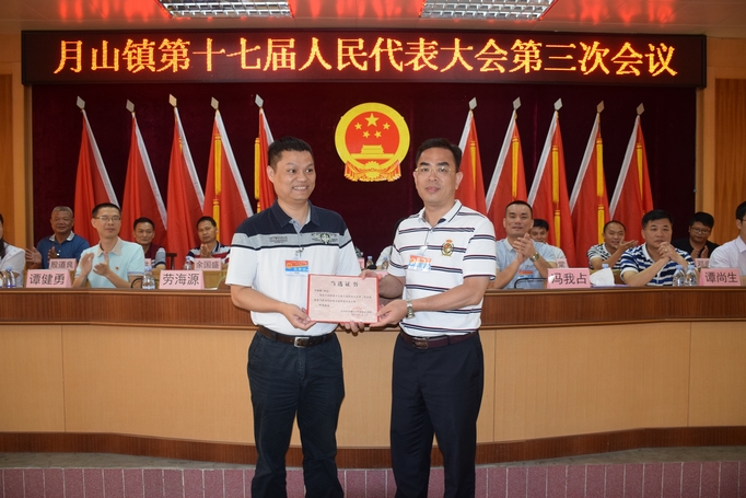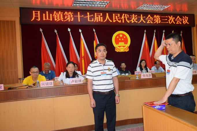 本次大会通过酝酿推荐、民主投票,依法选举劳海源同志为月山镇人大主席,并颁发当选证书。在当选讲话上,劳海源同志表态:在今后的工作中,必将恪尽职守,不辱使命,不负众望,脚踏实地地做好各项工作,做到职为民守,责为民尽,利为民谋,绩为民创!随后,劳海源在全体人大代表及列席人员的见证下进行了庄严的宪法宣誓仪式。