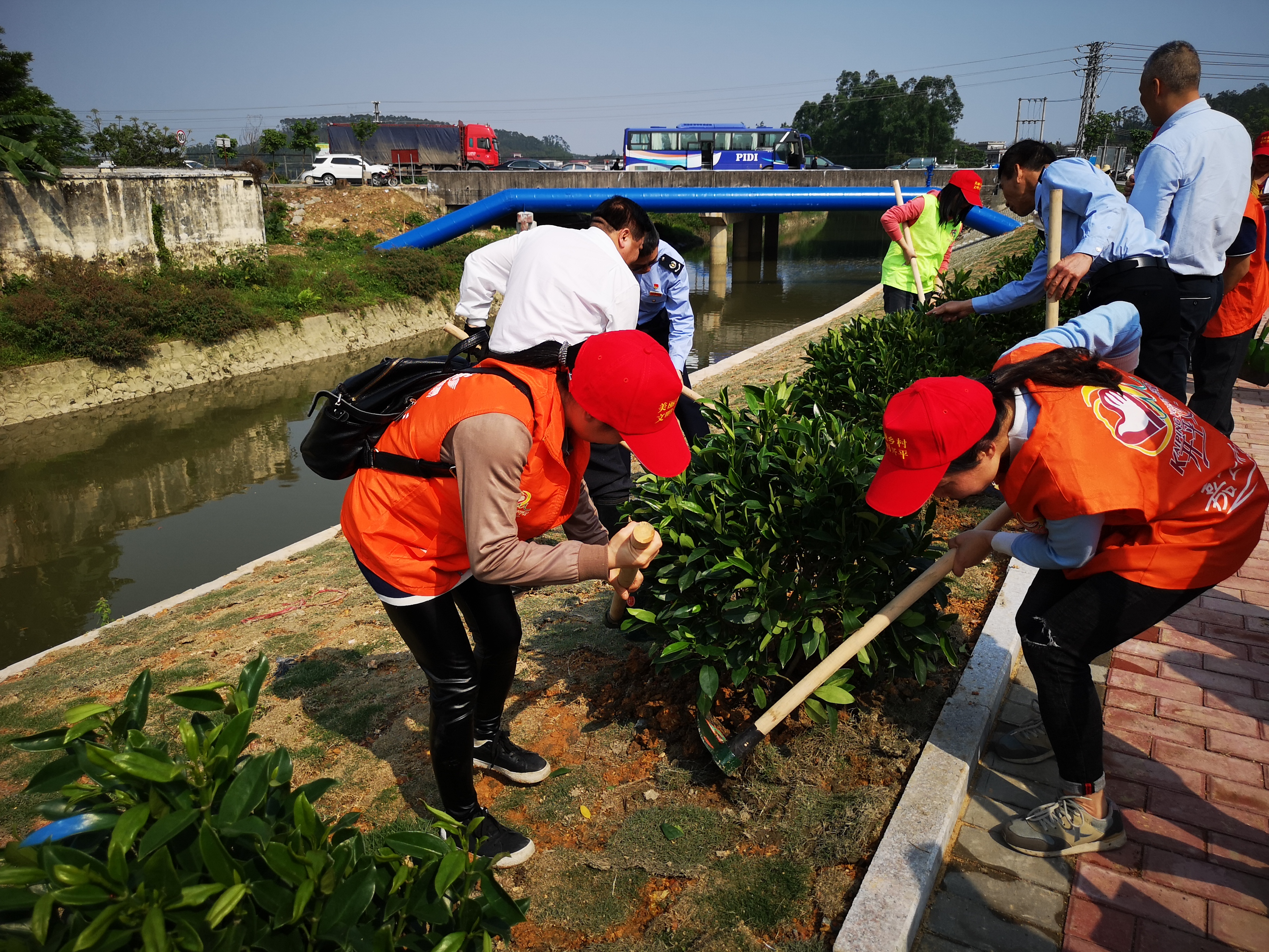 为了全面贯彻落实党的十九大精神以及习近平总书记系列重要讲话精神,树立和践行绿水青山就是金山银山的理念,2019年3月12日下午,月山镇人大组织人大代表参加了在新桥水(月山段)河岸边开展的植树活动。镇党委副书记、镇长、人大代表冯我占、镇人大主席候选人林上金、镇人大副主席卢彩娥以及30多位市、镇人大代表参与了此次活动。