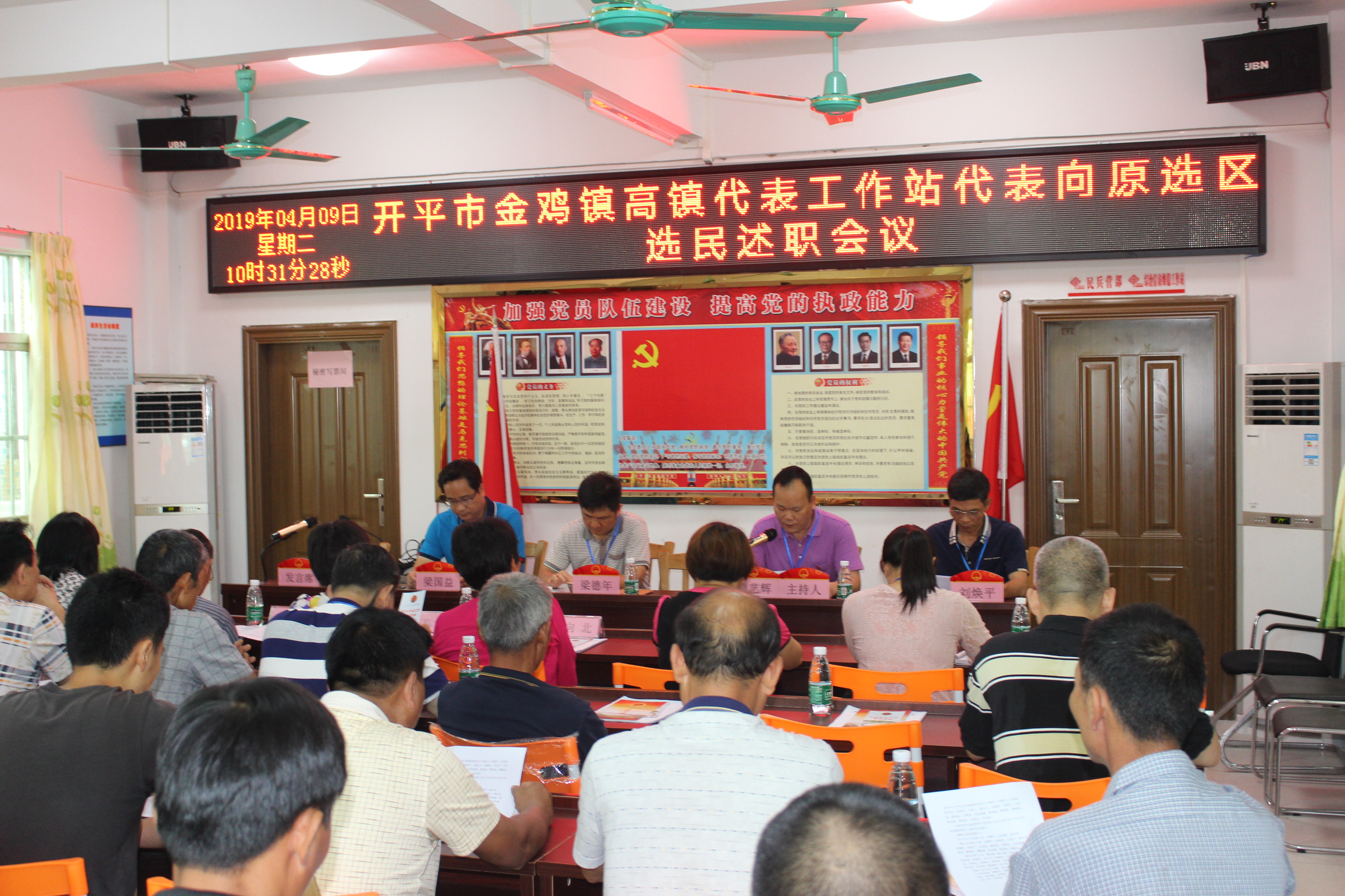 为进一步增强人大代表的使命感、责任感和履行职责的主动性、自觉性,增强人大代表与选区选民的联系,自觉接受广大选民的监督,4月9日上午,金鸡镇人大办、金鸡镇高镇代表工作站组织高镇、红光、石迳等五个村委会选区的市镇两级人大代表开展代表向选民述职评议活动,共有人大代表、选区选民和代表联系代表小组领导近60人参加。