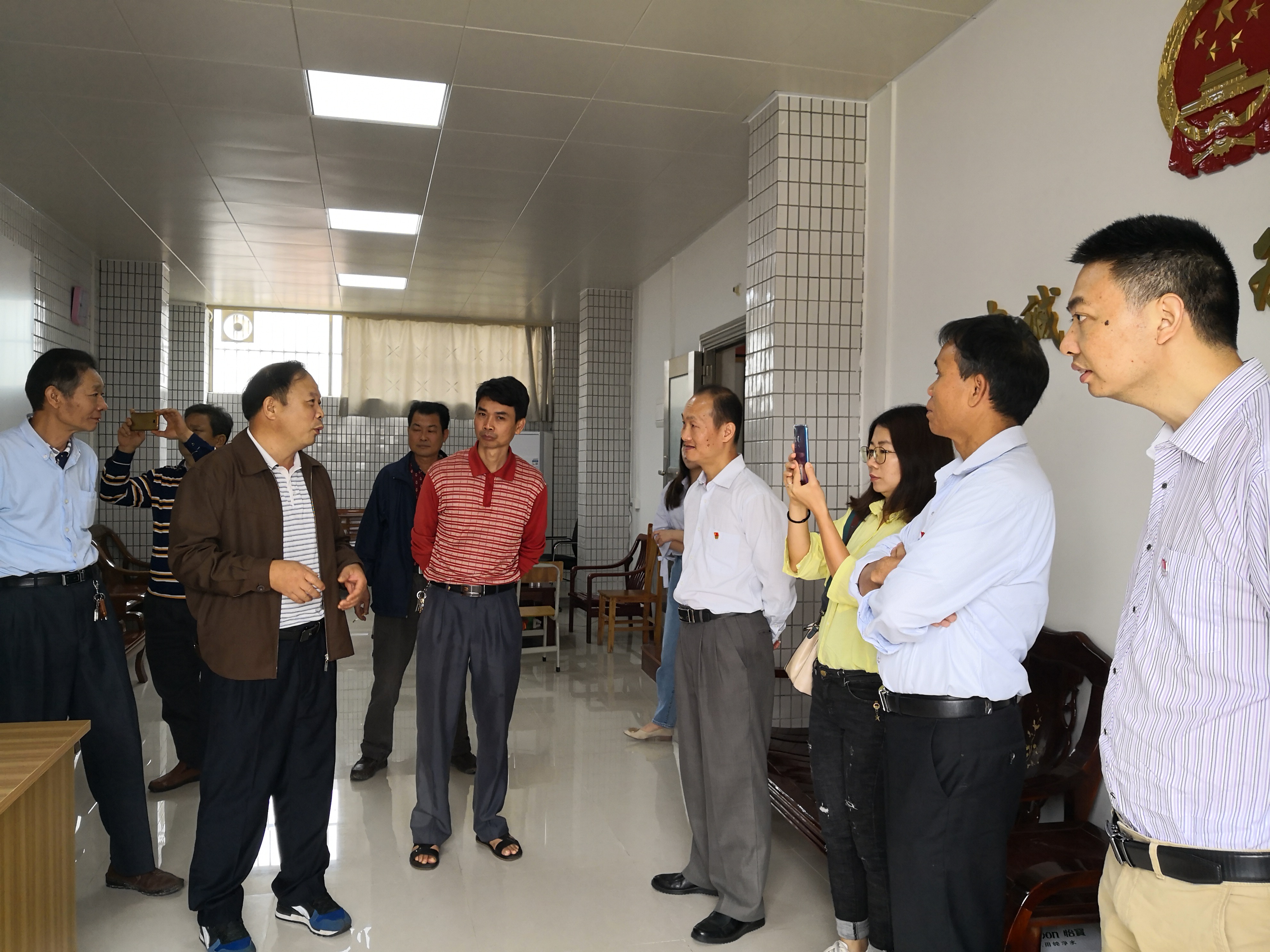 黄焜辉一行首先去到塘口镇的魁草村人大代表工作站,听取了塘口镇人大主席梁锦华关于人大代表工作站的建设经验,与梁主席进行了深刻的交流,并认真查阅了人大代表工作站的档案资料。