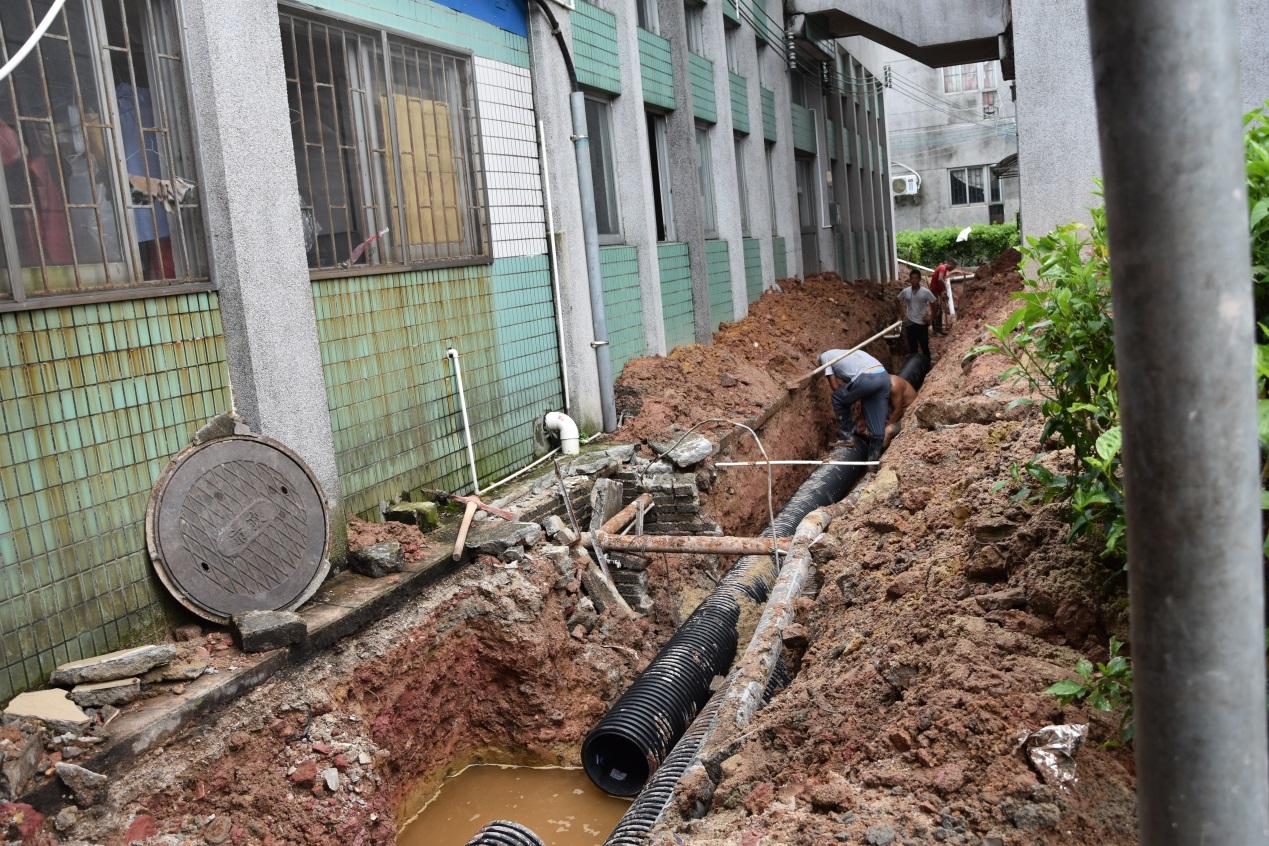 随后,代表团来到教伦中学污水收集管网工程施工现场。工程位于教伦中学校内,主要为提升学校2300多名师生产生的生活污水,配套排污管网,最终提升开平一中附近的污水泵站,再进入污水处理厂进行处理。代表们认真了解相关点位污水管网及配套设施建设情况。据现场施工队人员介绍,整个工程共分两部分:(1)开平市教伦中学校内截污管网工程位于开平市教伦中学校园内,敷设管径为DN300截污管道,约1108米,主要对原有管道进行改造;(2)开平市赤坎镇配套污水管网学院路开平一中至西头咀段及提升泵站工程位于赤坎镇开平一中至西头咀段,敷设管径为DN200截污管道,约2.5千米,建设提升泵站1座。整个项目估算总投资为700万元,其中开平市教伦中学校内截污管网工程建安费为370多万元;计划今年8月底完工。污水收集管网的建设,将解决教伦中学生活污水直排河道的现象,改善潭江河流水质,维护沿河水域的生态环境,改善居民生活条件,提高人民健康水平。