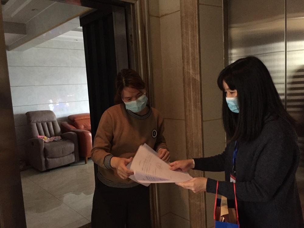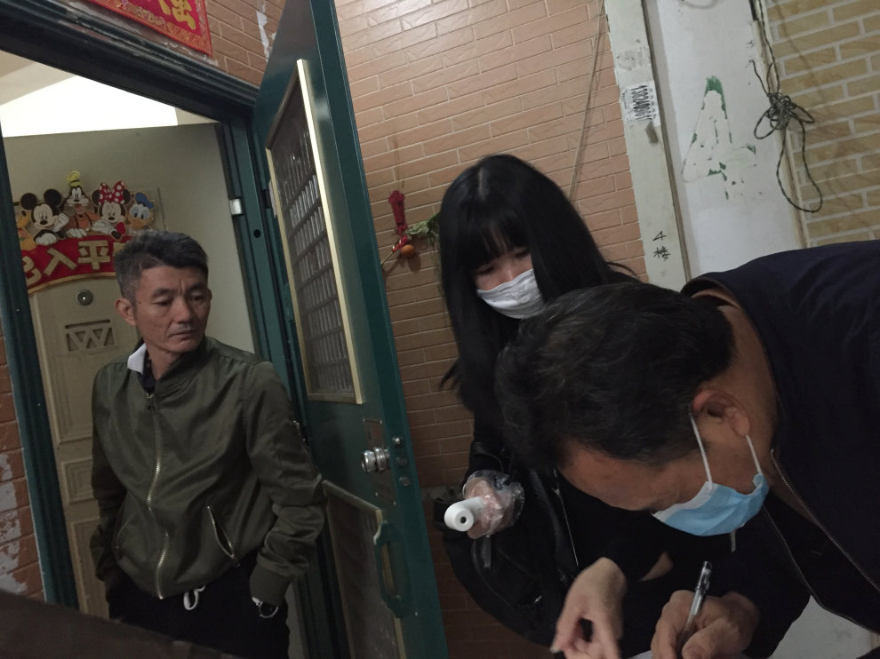 “我这里有一些消毒粉、酒精、口罩,现在给你送过去。”通过微信沟通获悉疑似病例家庭没有消毒液和口罩后,关雪英把镇政府发放给居委会办公室的防疫物品送过去。这户家庭有一人在医学隔离观察期间发烧,经过医院初步诊断为肺炎,但核酸检测结果未出。关雪英内心焦急得很,更让她糟心的是疑似病例的宝宝才2岁,关雪英担心居住环境的清洁、消毒做不好的话,小朋友容易感染。