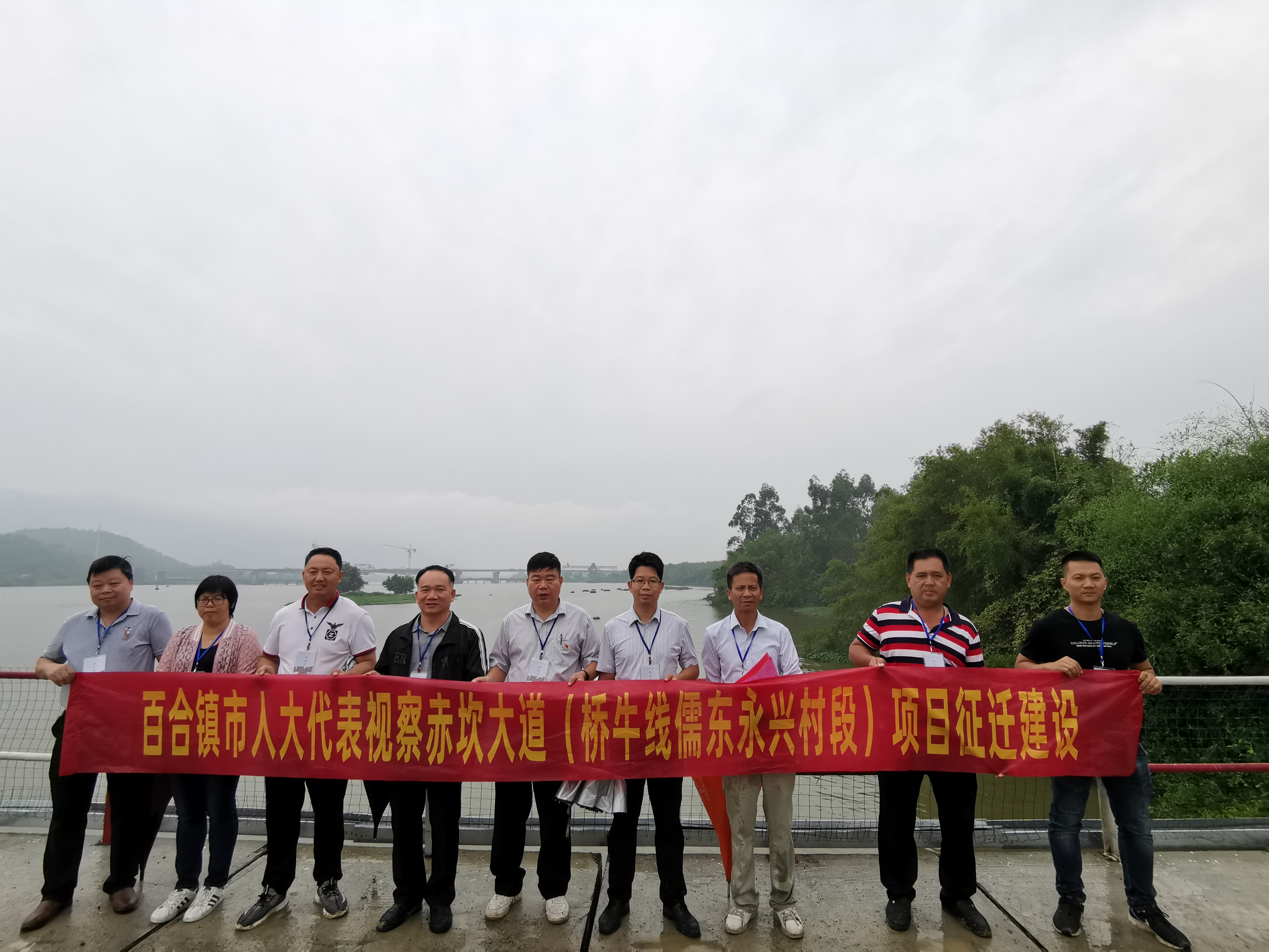 10月19日,开平市百合镇人大组织该镇的江门市、开平市及百合镇三级人大代表现场视察开平市赤坎大道(桥牛线儒东永兴村段)建设工程项目推进落实情况。该工程项目是开平市“十三五”规划重点项目、市重点民生工程,也是全市“做活南部”、发展全域旅游的重要举措。百合镇主要负责该项目本辖区内的征迁工作。代表们现场听取百合镇镇长梁志伟关于该项目进展情况介绍,并就项目加快建设提出意见建议。