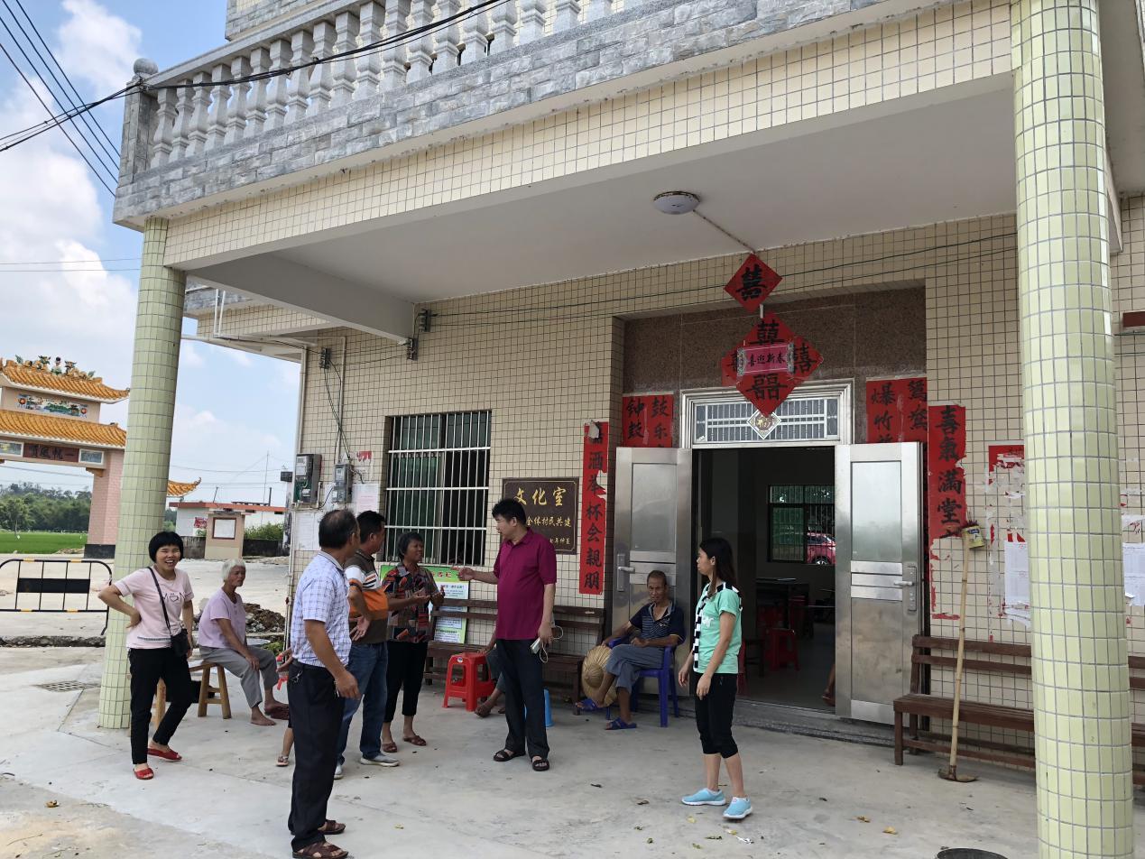 镇人大主席梁锡富、市人大代表梁福全向群众宣传台风注意事项