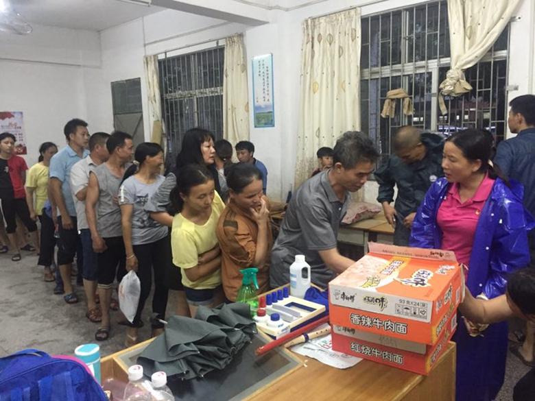 月山镇水井片区(水一、水二、水三、水四、水井社区)养殖户、游耕户人数较多,为方便群众应急避难,开放了水井小学作为临时庇护中心。16日,前来水井小学应急避难的群众达300多人。台风期间,人大副主席卢彩娥始终在一线指挥群众安置工作,联合驻村同志为庇护点群众派发充饥食物,社区党支部书记梁飞龙及社区干部杨信成冒雨为群众送水。水井一名热心老板何立权,还开放了自家的商铺给群众应急避难,并张罗着为受灾群众送上热粥。
