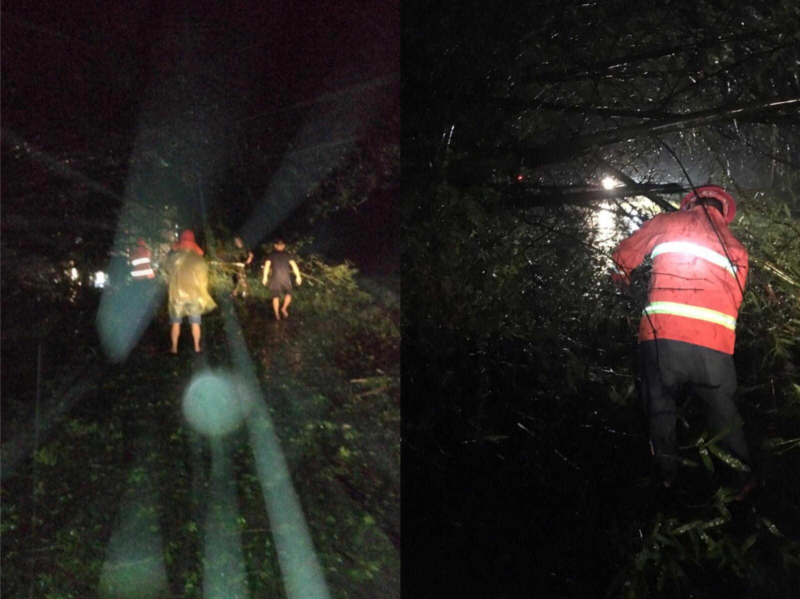16日傍晚,全镇多地发生树木倒塌、村落停电的状况。苍城镇各级人大代表不畏狂风暴雨,摸黑检查、清理路障、尽力抢修,成为了苍城镇抢险救援路上的中坚力量。