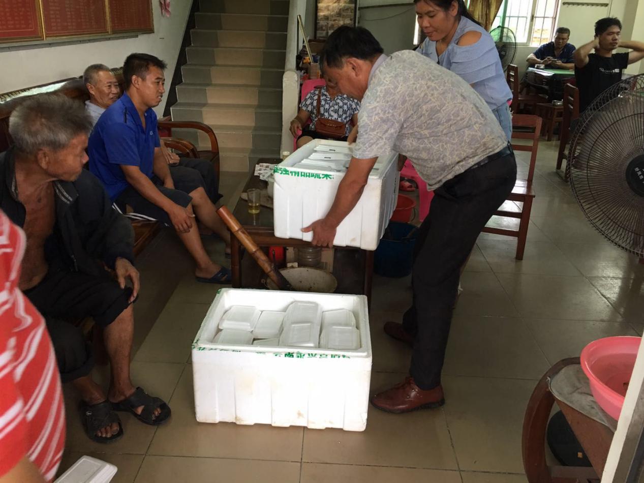 镇人大代表谭卓权为转移群众送上热腾腾的饭菜