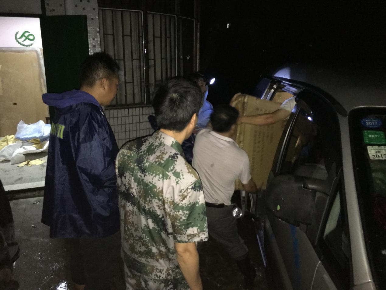 镇委副书记、镇人大代表李祖华连夜作战为转移群众送救灾物资