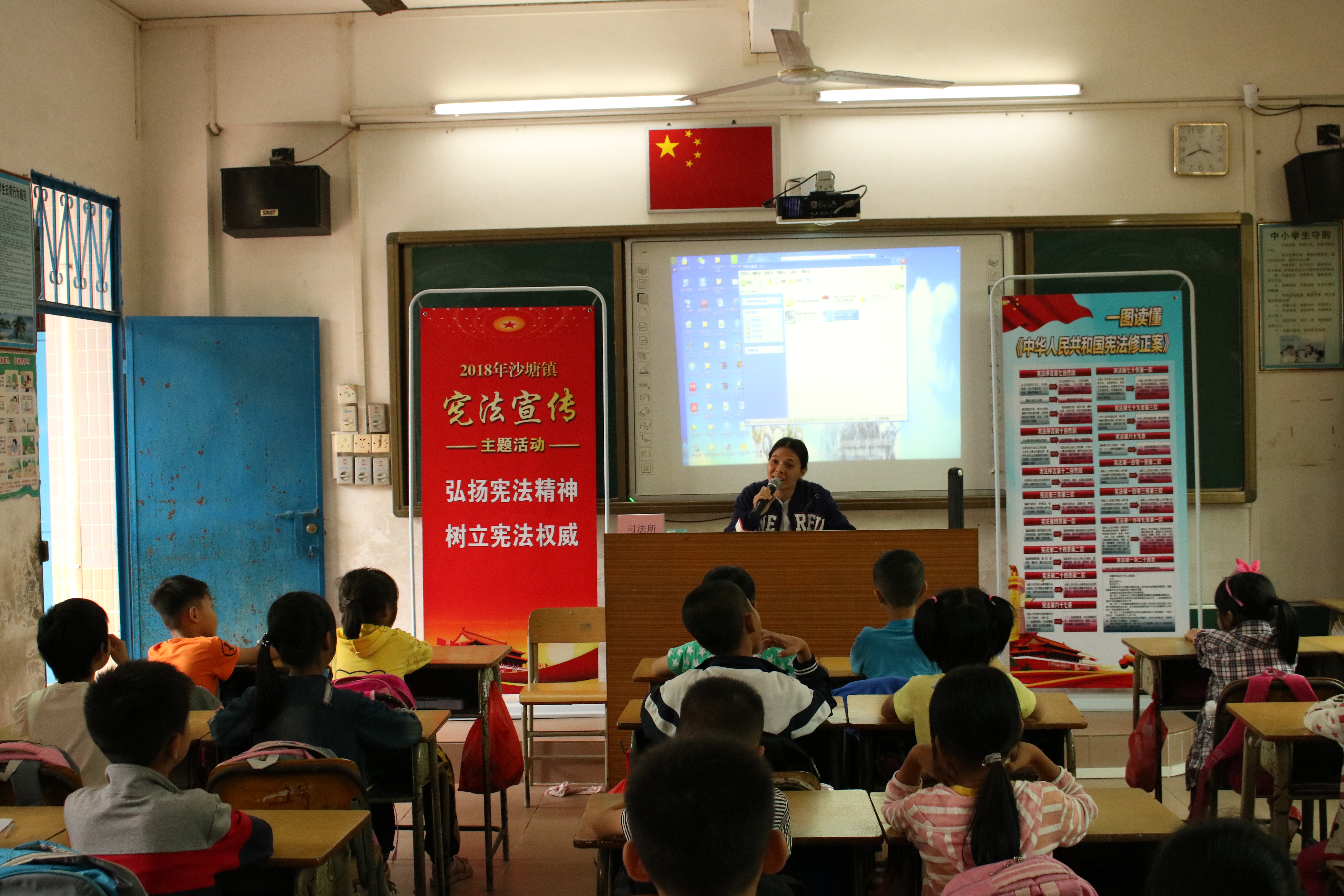 进校园活动中,邀请沙塘镇司法所所长谢彩珠围绕《宪法修正案解读》为沙塘学校塘浪分教点的学生授课,学生积极参与、踊跃发言提问,在孩子们心里种下法治的“种子”。活动最后,前来参与活动的各位代表纷纷为学生代表们送去寄语和祝福,希望同学们能够好好学法,用法,守法,好好学习,健康成长。