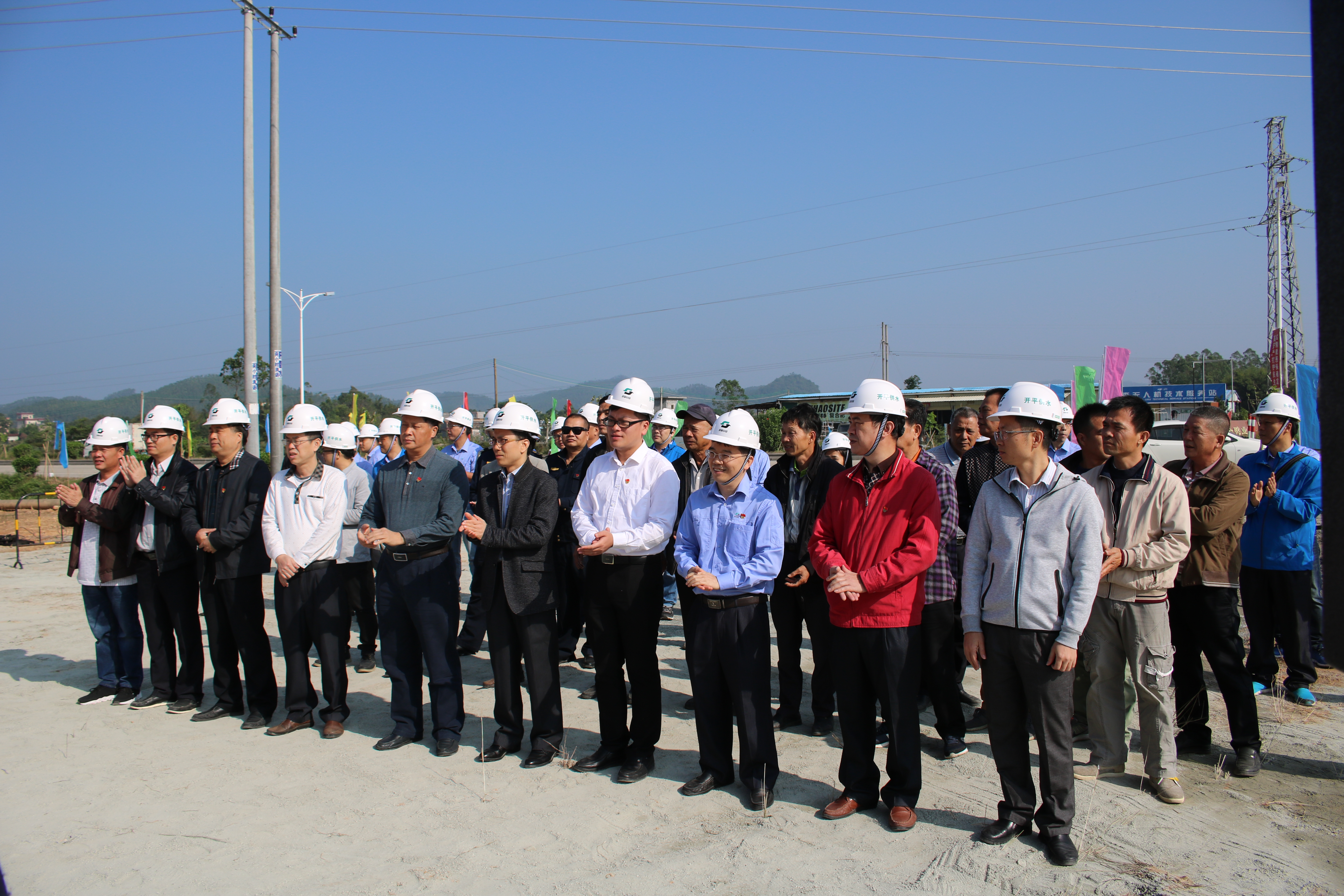 2018年11月23日上午,开平市苍城至沙塘DN300供水管道工程现场举办简单而庄重的开工仪式,开平市供水集团总经理曾祥发、沙塘镇党委书记余伟权、开平市府办公室副主任科员周觉能等同志分别作出讲话。