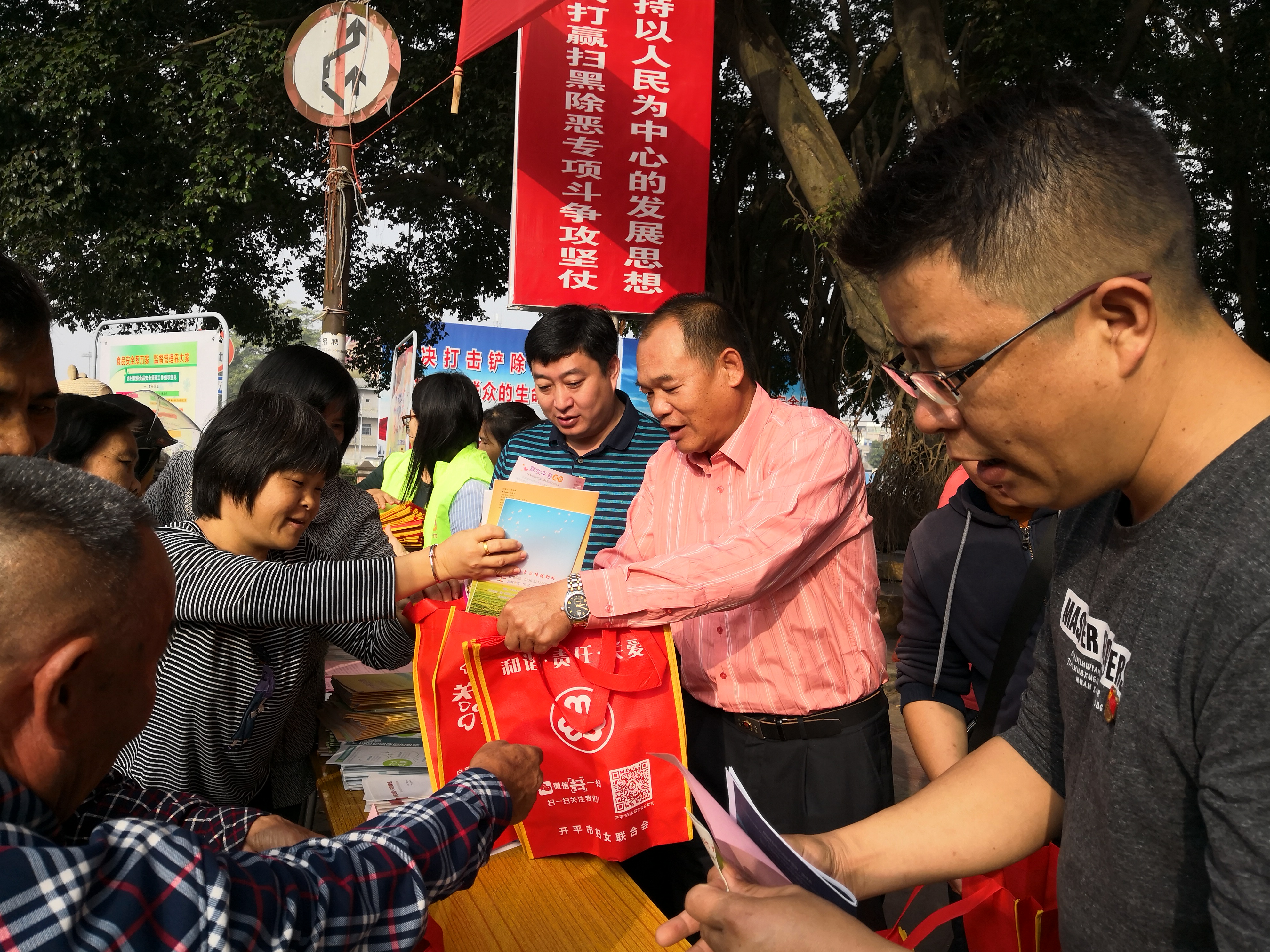 12月4日上午,镇人大办与镇司法所又联合举办2018年创建平安暨“12.4”宪法宣传活动,镇共有60多名三级人大代表参加了活动。他们积极地向群众宣传宪法精神,发放《法律小册子》、《开平市公共法律服务中心指南宣传手册》、宣传环保袋等宪法宣传物资,群众反响强烈,收到良好的宣传效果。(苍城镇人大办)