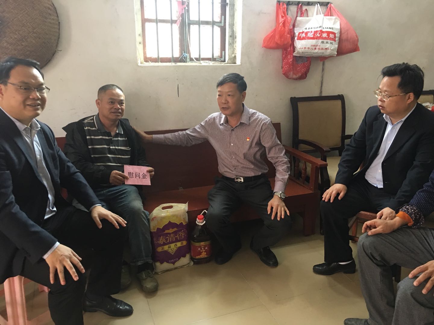 1月30日市人大代表、镇人大主席梁锡富分别来到牛山村委会和蒲冈村委会,为困难群众送去了节日慰问金及油、米等慰问品,祝福他们能过上一个开心、温暖的春节。在蒲冈村与精准扶贫户李浩华家中户亲切交谈、嘘寒问暖,询问贫困户今年的家庭经济收入、生产生活和帮扶政策计划落实情况,倾听他们的所需所想,鼓励他们坚定信心、自强不息,要正确把握精准扶贫的政策和机遇,依靠自身的努力,争取早日过上幸福美满的生活。
