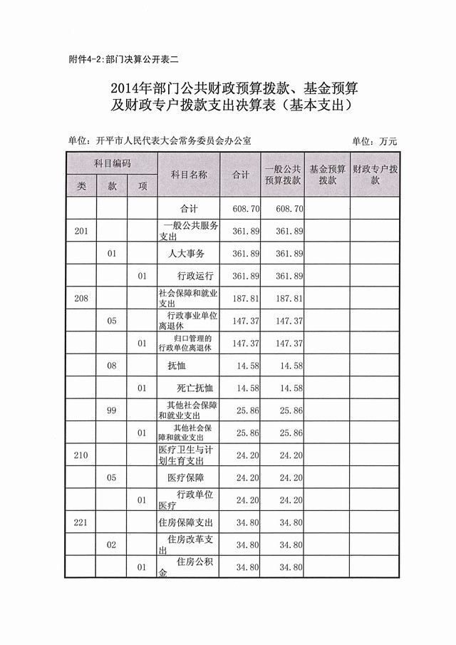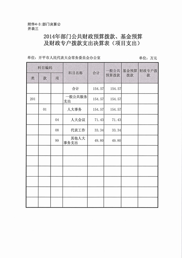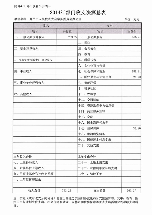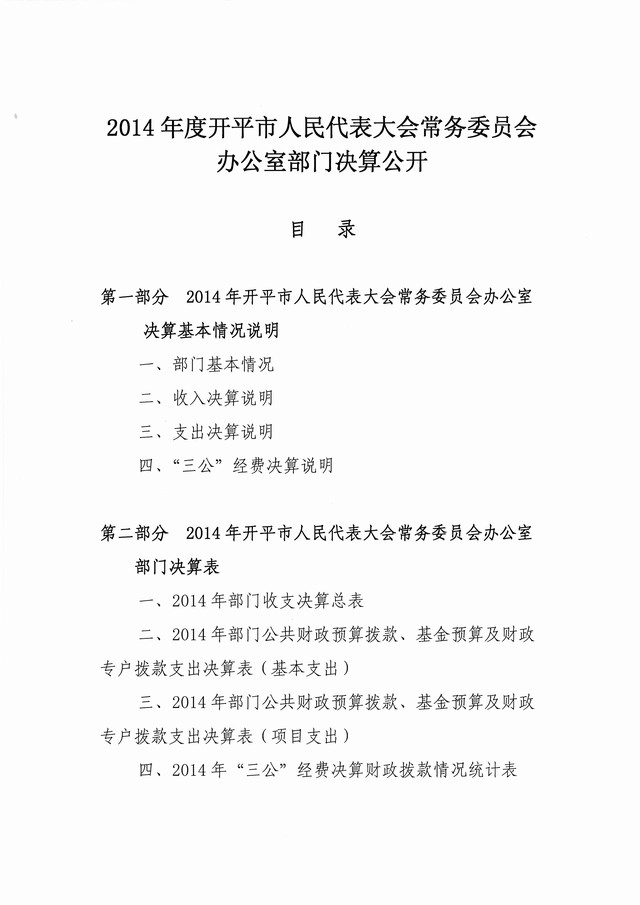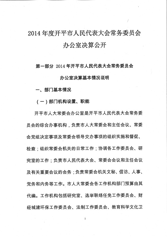2014年度开平市人大常委会办公室部门决算公开