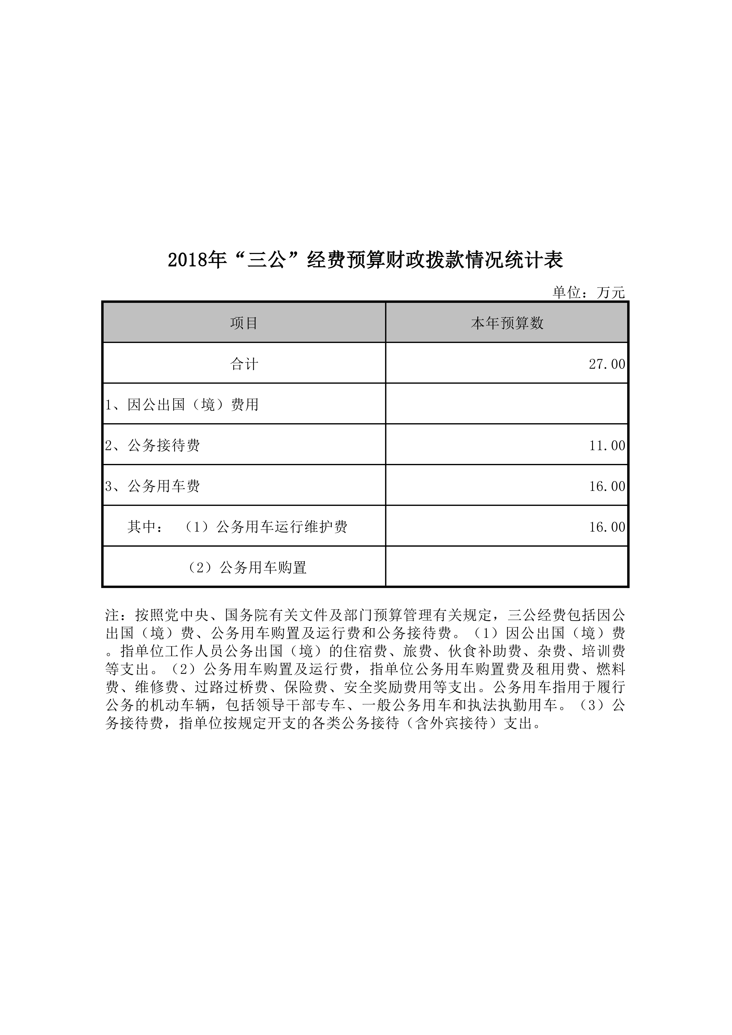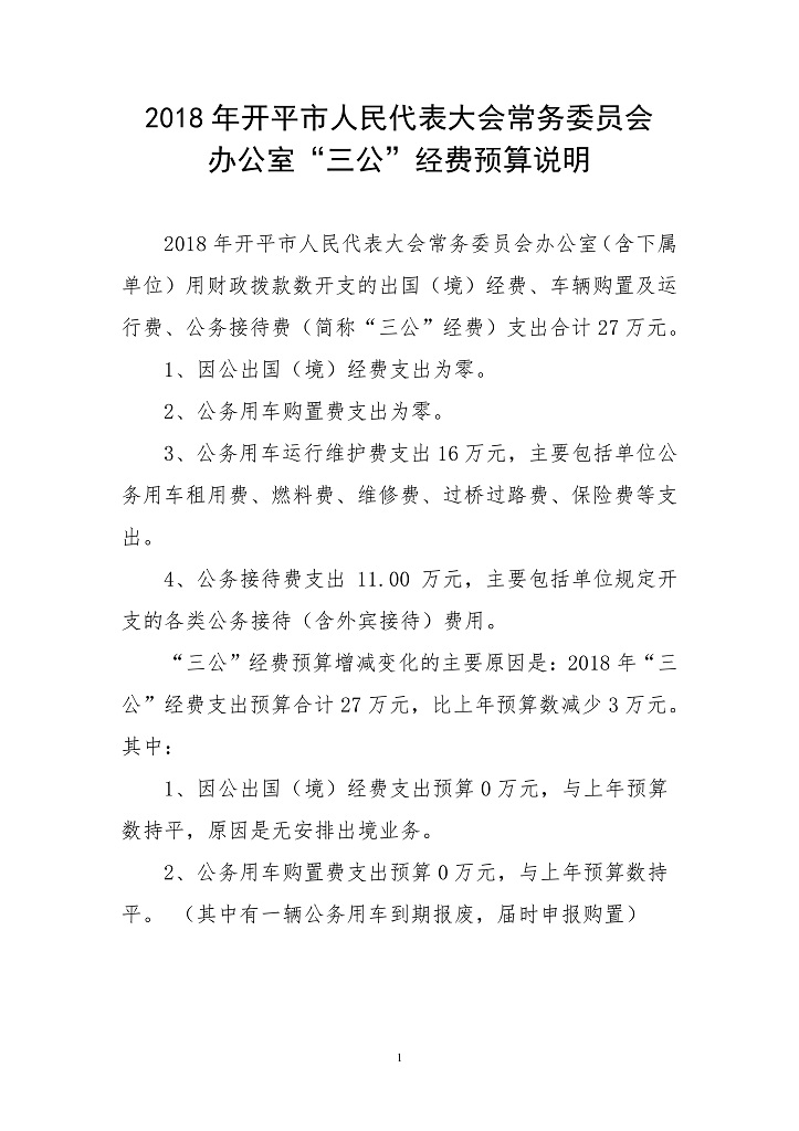 2018年开平市人民代表大会常务委员会办公室“三公”经费公开情况