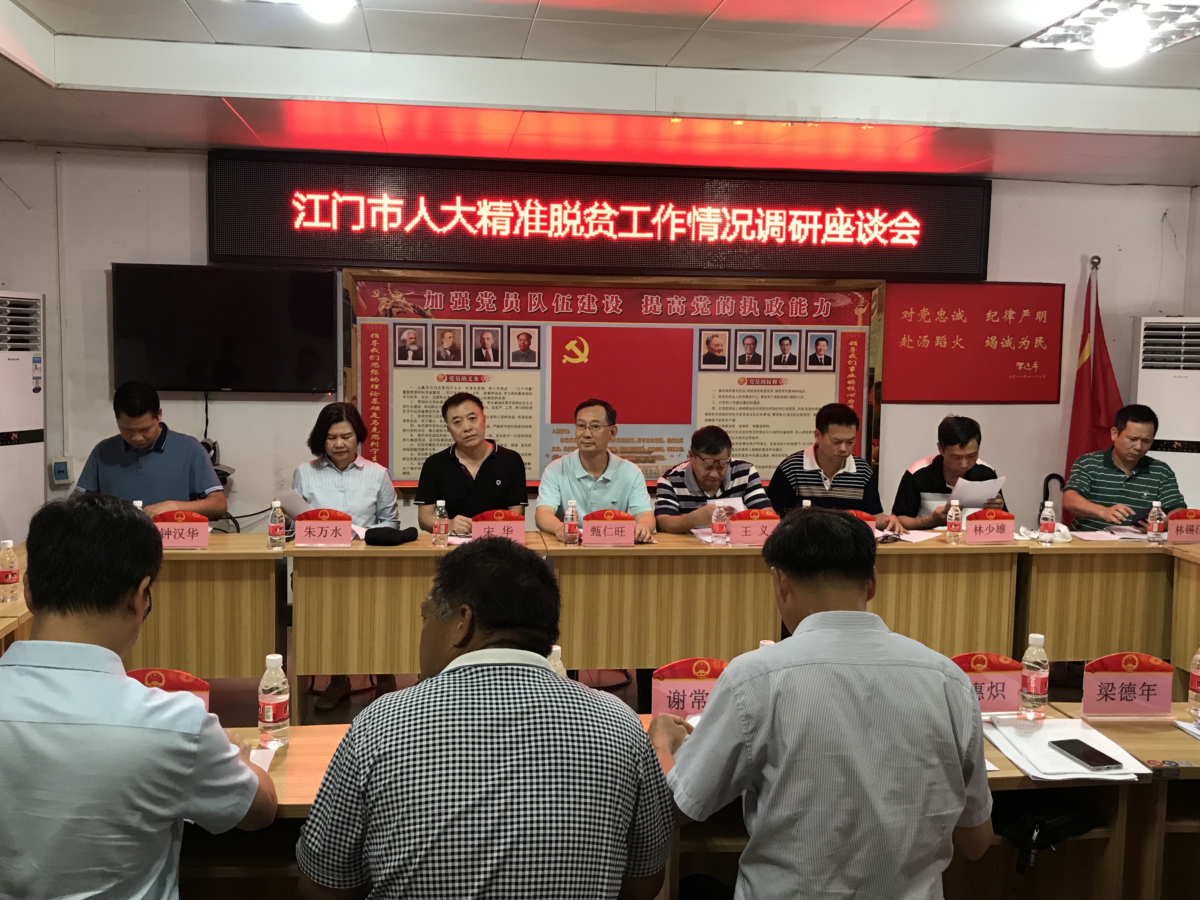 6月12日下午,江门市人大常委会副主任甄仁旺率队到开平市金鸡镇开展精准脱贫工作专题调研,开平市人大常委会副主任谢常荣陪同调研。