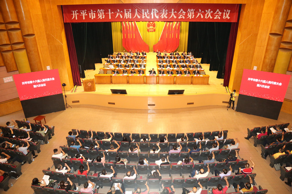 7月14日上午,开平市十六届人大六次会议在市人民会堂开幕。开平市代理市长马品高代表市政府向大会作《政府工作报告》,回顾过去一年工作,提出今年各项工作目标,推进疫情防控和经济社会发展取得双胜利。