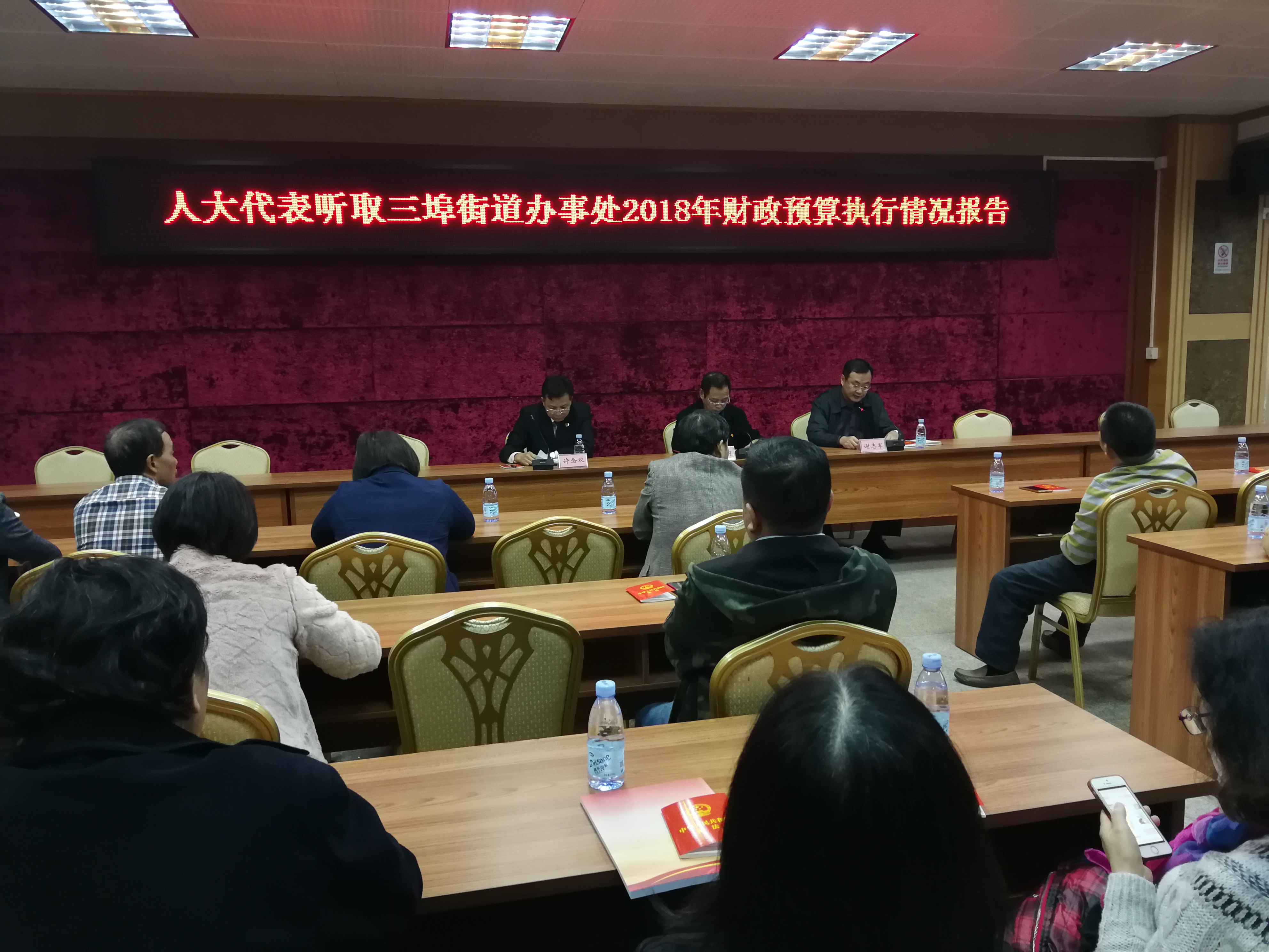 随后,三埠街道党工委委员谢志军通报了《2018年1-11月份三埠街道办事处财政预决算实施情况》。