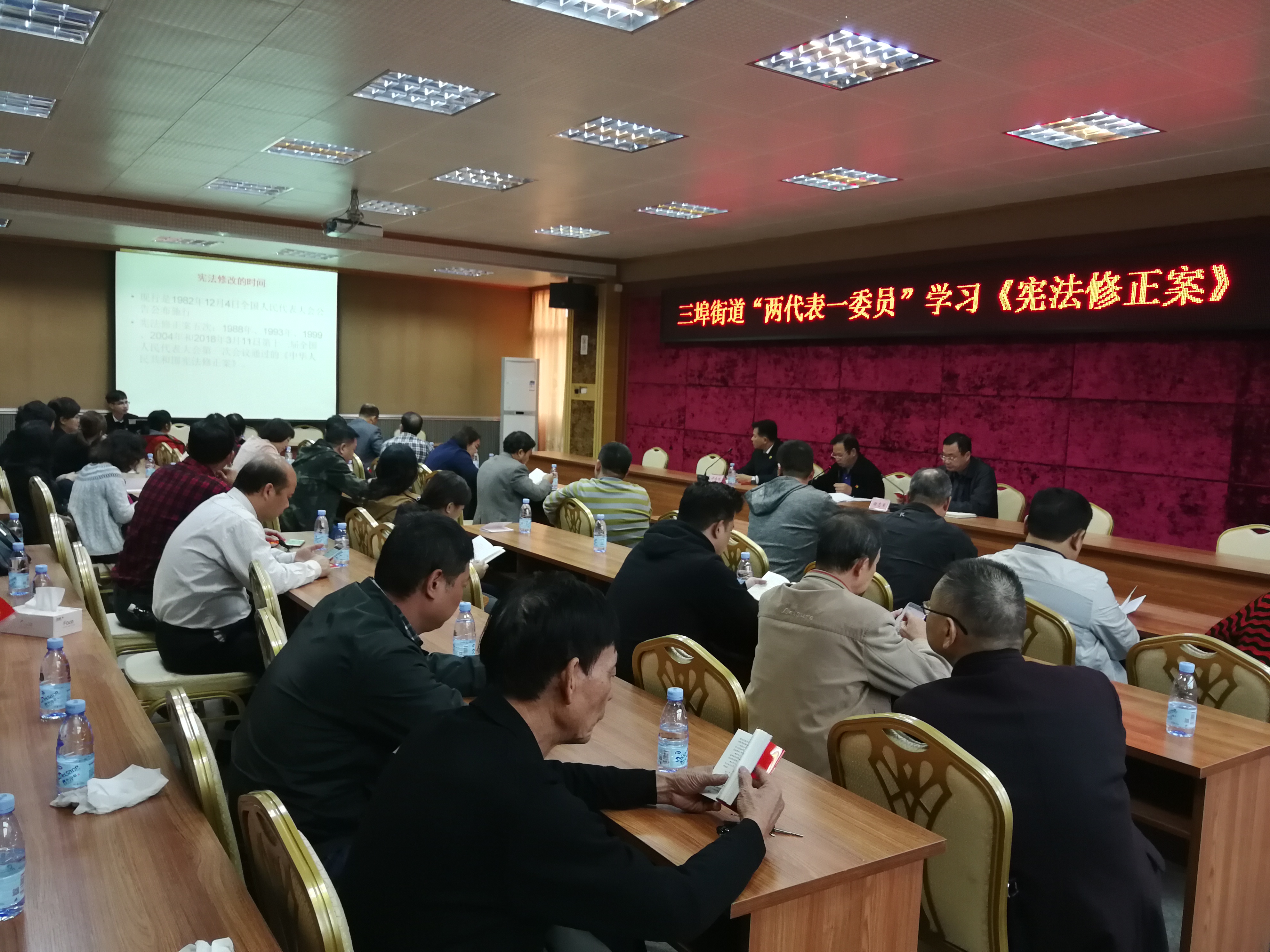 座谈会上,首先由三埠街道人大工委主任劳均明以“学习宪法精神,勇担时代使命”为主题作《宪法修正案》知识讲座。劳均明指出,宪法乃国之重器,大家都必须弘扬宪法精神,树立宪法权威,培育法治文化,并坚持不断加强对宪法的学习和做好对宪法的宣传。